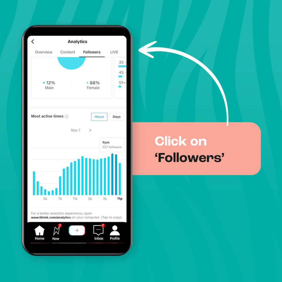 The key is to uncover your own best time to post on TikTok, and you can do that by diving into your TikTok analytics. If you haven't posted anything yet, you should jump straight to Best times to post on TikTok.